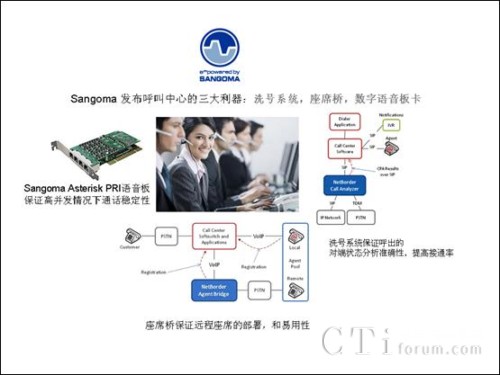 多年的北美通信市場(chǎng)和asterisk開(kāi)源市場(chǎng)的磨練,和Sangoma產(chǎn)品通過(guò)在國(guó)際市場(chǎng)的經(jīng)驗(yàn),sangoma 發(fā)布的產(chǎn)品充分得到了呼叫中心國(guó)際廠商和asterisk 呼叫中心廠家的認(rèn)可,在洗號(hào)系統(tǒng),橋座席,語(yǔ)音板卡上面保證了呼叫中心的穩(wěn)定性,提高了呼叫中心的接通率,節(jié)省了座席遠(yuǎn)程管理的成本。同樣,Sangoma 也非常希望分享Sangoma在國(guó)外市場(chǎng)的成果,把卓越的產(chǎn)品帶給呼叫中心的廠家和客戶。