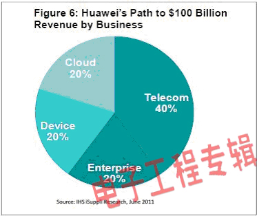 為了實現(xiàn)下一個成長目標(biāo),華為將專注于企業(yè)、設(shè)備和云計算等領(lǐng)域中的新機會。到2020年,上述每個領(lǐng)域都將占該公司營業(yè)收入的20%,合計占60%。其余40%營業(yè)收入將來自該公司的傳統(tǒng)電信設(shè)備業(yè)務(wù)。