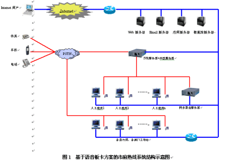 市府熱線系統(tǒng)是一個集合電話語音、計算機網(wǎng)絡、數(shù)據(jù)庫等技術的綜合信息服務平臺,主要由自動語音應答系統(tǒng)、人工座席和數(shù)據(jù)庫系統(tǒng)三部分組成。