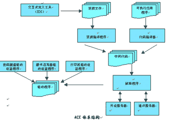 ACE平臺(tái)主要由ACE解釋器、編譯器、交互式開(kāi)發(fā)工具(IDS)、LCG及配置工具等部分組成。