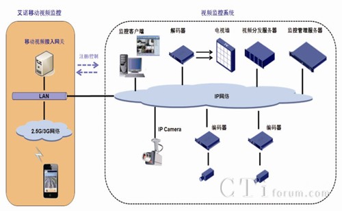 艾諾通信憑借多年的移動(dòng)視頻開發(fā)和項(xiàng)目經(jīng)驗(yàn),推出了移動(dòng)視頻監(jiān)控解決方案。該方案采用移動(dòng)視頻接入服務(wù)器與原有監(jiān)控系統(tǒng)互通,將監(jiān)控圖像通過智能轉(zhuǎn)碼技術(shù)處理,轉(zhuǎn)換成可以在移動(dòng)網(wǎng)絡(luò)上流暢傳送的視頻碼流,最終將圖像呈現(xiàn)在手機(jī)、平板電腦等安裝了視頻監(jiān)控客戶端的移動(dòng)終端上。同時(shí),監(jiān)控中心也可以通過手機(jī)逆向監(jiān)控。