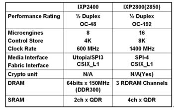 Intel XP-2XXX系列網(wǎng)絡(luò)處理器大致包含:IXP-2400、IXP-2800及IXP-2850,請參考表一的性能差異。除此之外,Intel還考慮比照了IXP-42X系列的做法,高度整合MACs等功能模塊,建造優(yōu)異的性價比產(chǎn)品,使這一系列處理器的應(yīng)用更普及化。