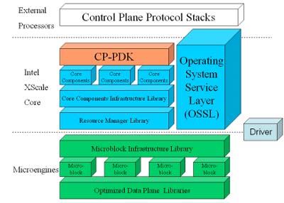 應(yīng)用程序的開發(fā)也可以通過Intel IXA SDK得到幫忙,考慮到投資杠桿效應(yīng),Intel IXA軟件程序架構(gòu)采模塊化,SDK提供一些基本的microblocks,開發(fā)者再開發(fā)自有的microblocks,將這些microblocks視為基礎(chǔ)組件(Building Blocks),去組合實現(xiàn)實際的功能應(yīng)用,讓開發(fā)者的工作簡單化,也縮短TTM時間。
