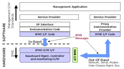 - 管理軟件:系統(tǒng)管理者最常接觸的就是上層的管理軟件,簡單的類型就是使用一般的終端機(Terminal)程序來接收從Serial/Modem所傳送過來的文字訊息。近年來,除了BMC廠商會有自行開發(fā)的上層管理軟件外,也有不少的軟件廠商加入了開發(fā)管理軟件的行列,而他們最主要利用的溝通界面即為網絡界面。不管是通過序列或是網絡,在界面上傳輸的都是BMC所能辨認的IPMI訊息。