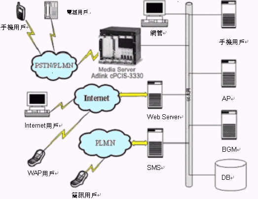 Server)。它采用CompactPCI架構(gòu),完全勝任通訊領(lǐng)域?qū)υO(shè)備的嚴(yán)格要求。BGM的核心硬件采用NMS高密度和高DSP資源CG6500C系列板卡,把PSTN接口、各種電信協(xié)議、綜合的IVR功能、全雙工回音消除、語音編碼、傳真處理、會議應(yīng)用、高速以太網(wǎng)口以及包協(xié)議等多種功能集中在一個單槽模塊上。