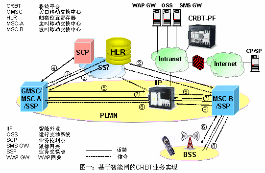 智能網(wǎng)方案對現(xiàn)有的網(wǎng)絡(luò)改動較小,可以快速開展彩鈴業(yè)務(wù)。但是,在現(xiàn)有的智能網(wǎng)網(wǎng)絡(luò)條件下,該方案會造成話路迂回,占用過多的中繼資源;而且整個呼叫過程中都要占用CRBT-IP,容易造成話務(wù)負載過大,限制了CRBT業(yè)務(wù)的用戶數(shù)量。
