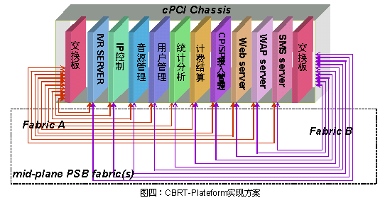 CRBT系統(tǒng)由兩大部分構(gòu)成,增強型獨立IP設(shè)備(CRBT-IIP)和CRBT管理平臺(CRBT-Plateform)。它們均適合采用基于CompactPCI開放式標準架構(gòu)的解決方案。CRBT-IIP設(shè)備