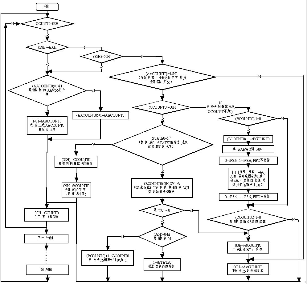 (3)在連續(xù)收到至少20個55h數(shù)據(jù)(即通道占用信號)后,程序才往下執(zhí)行,否則表明此次FSK數(shù)據(jù)出錯,應退出本次收號。