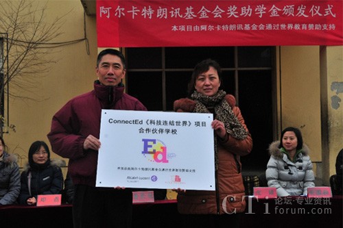 CTI論壇(ctiforum)3月6日消息(記者 浩宇):近日,法國阿爾卡特朗訊基金會(Alcatel-Lucent Foundation)與美國非營利組織世界教育(World Education)在北京市大興區(qū)農(nóng)民工子弟學(xué)校——龍海學(xué)校聯(lián)合舉辦公益助學(xué)活動(dòng),來自阿爾卡特朗訊中國旗艦企業(yè)——上海貝爾及世界教育的志愿者為45名貧困生、72名成績優(yōu)秀學(xué)生、244名成績進(jìn)步獎(jiǎng)獲得者共計(jì)361人發(fā)放獎(jiǎng)助學(xué)金和獎(jiǎng)狀。此次活動(dòng)是ConnectEd“科技連結(jié)世界”項(xiàng)目協(xié)助流動(dòng)青少年“透過科技擁抱世界”系列公益活動(dòng)的重要一站,ConnectEd “科技連結(jié)世界”項(xiàng)目由阿爾卡特朗訊基金會(Alcatel-Lucent Foundation)與世界教育(World Education)共同在全球推動(dòng)。作為志愿者之一,上海貝爾執(zhí)行副總裁、阿爾卡特朗訊中國區(qū)產(chǎn)品與研發(fā)負(fù)責(zé)人莊靖博士參與了此次活動(dòng),并為阿爾卡特朗訊ConnectEd項(xiàng)目合作校揭牌。雙方還在北京市昌平區(qū)新源學(xué)校舉行了公益助學(xué)活動(dòng),為45名貧困生、39名成績優(yōu)秀學(xué)生、52名成績進(jìn)步獎(jiǎng)獲得者共計(jì)136人發(fā)放獎(jiǎng)助學(xué)金。
