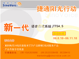 自2006年8月18日,捷通華聲正式發(fā)布新一代語(yǔ)音合成系統(tǒng)jTTS4.5,全面啟動(dòng)新品上市、回