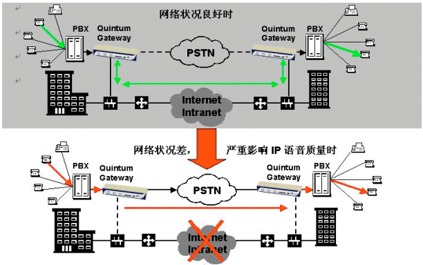 。。Quintum TASQTM專利技術(shù)可動態(tài)監(jiān)控網(wǎng)絡(luò)流量狀況,在任何時刻當(dāng)網(wǎng)絡(luò)頻寬低于企業(yè)預(yù)設(shè)門限值,以致于無法負(fù)荷企業(yè)所要求的語音品質(zhì)時,語音回路將自動切換到傳統(tǒng)
