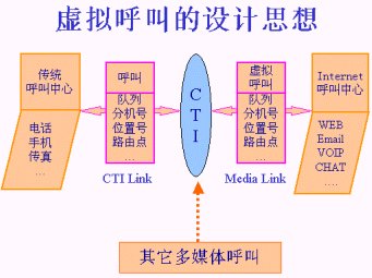 由于有了這種“虛擬呼叫”的技術(shù),CTI平臺(tái)才能夠?qū)?shí)際的電話呼叫和來(lái)自Internet的訪問(wèn)進(jìn)行統(tǒng)一的處理。這是一種完整意義上的將傳統(tǒng)呼叫與Internet訪問(wèn)完美結(jié)合的設(shè)計(jì)思想。