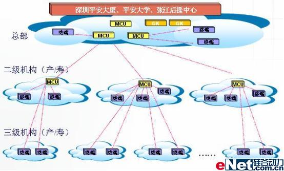 平安保險公司的視頻會議系統(tǒng)覆蓋公司產險、壽險、信托、銀行等各分支公司。從99年起,平安保險的視頻會議系統(tǒng)建設就未曾停滯過,至今年7月,已經在產險和壽險兩大公司內覆蓋至全國各地的三級機構,其他分公司也已經覆蓋至全過二級機構。公司全部使用POLYCOM視頻會議系統(tǒng)構架其主要會議室,終端總數(shù)已超過四百臺,多點會議服務器(MCU)四十余臺,分布全國各地以及平安保險公司全球的各樞紐公司。預計至今年年底,平安保險的POLYCOM視頻會議系統(tǒng)將成為國內最大的企業(yè)級視頻會議應用系統(tǒng)。