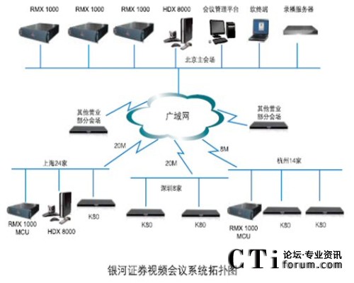 銀河證券視頻會(huì)議系統(tǒng)采用寶利通視頻會(huì)議產(chǎn)品,在銀河證券北京總部中心機(jī)房配備寶利通新一代實(shí)時(shí)媒體會(huì)議平臺(tái) RMX 1000 MCU和高清錄播服務(wù)器;在上海和杭州也分別配置了RMX