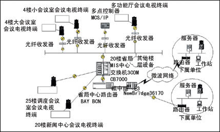 云南電力集團有限公司會議電視系統(tǒng)一期工程視頻方案基于H.323標準,以路由器連接專線(或DDN、幀中繼)為傳輸媒介,全省會議電視用戶以星形網(wǎng)絡結構通過路由器和省調(diào)MCS/IP聯(lián)接,全網(wǎng)運行速率64kb/s--1920kb/s,分級可調(diào)。中心會場設在云南省電力局大樓內(nèi)。在省電力局采用H.323 多點會議服務器MCS/IP,可連接32個用戶,覆蓋了全省,包括昆明電力大樓、調(diào)度中心、昆明發(fā)電廠、曲靖電廠、漫灣電廠、滇西電業(yè)局、滇中電業(yè)局、滇東電業(yè)局、陽宗海電業(yè)局、昆明供電局、昆明供電局、宣威電廠,除Hub外,其他會場均通過Cisco 3810路由器接入,在路由器中運行RSVP協(xié)議。