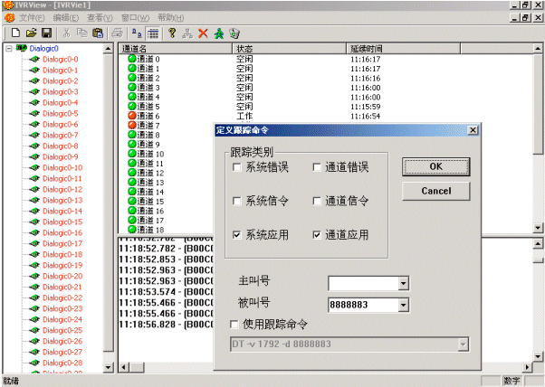 ICANS平臺(tái)提供監(jiān)控模塊,用于控制ICANS平臺(tái)的啟動(dòng)和監(jiān)視平臺(tái)的工作狀況,以及連入其他應(yīng)用模塊。該平臺(tái)可以以圖表方式全屏顯示所有線路狀態(tài)(空閑/撥號(hào)/語音/傳真)及訪問總次數(shù),詳細(xì)反映每條線路、每個(gè)任務(wù)的實(shí)時(shí)運(yùn)行情況,便于用戶及時(shí)掌握系統(tǒng)的運(yùn)行情況。