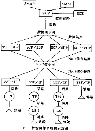 --智能網(wǎng)是通過業(yè)務(wù)交換點(SSP)、業(yè)務(wù)控制點(SCP)、數(shù)據(jù)庫(SDP)、智能外設(shè)(IP)以及業(yè)務(wù)管理點(SMP)、業(yè)務(wù)生成環(huán)境(SCE)等來生成和實現(xiàn)新業(yè)務(wù)的。它可以為所有的通信網(wǎng)絡(luò)服務(wù),無論是PSTN、PSPDN、PLMN、N-ISDN。圖1所示是PSTN、PLMN、N-ISDN還是B-ISDN。圖1所示為我國目前智能網(wǎng)的結(jié)構(gòu),其中的SMAP是業(yè)務(wù)管理接入點。LS是市話交換,TS是長途交換級,TM為匯接局。