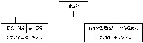 此五種模式建立在營(yíng)業(yè)部基礎(chǔ)上,在券商總部,建議設(shè)立垂直的業(yè)務(wù)管理機(jī)構(gòu),即經(jīng)紀(jì)業(yè)務(wù)總部實(shí)行事業(yè)部制,下設(shè)分工專(zhuān)業(yè)的市場(chǎng)營(yíng)銷(xiāo)部、客戶(hù)服務(wù)部、經(jīng)紀(jì)人訓(xùn)練部和綜合管理部等。