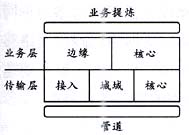 業(yè)務層的基本功能是在由傳送層提供的“電路”中把負荷進行“整形”并進行信息的交換,其目標是提升每一個比特的價值。業(yè)務層被橫切為邊緣和核心兩大部分,界線是10萬分組/s。在業(yè)務層,數(shù)據(jù)分組被單獨處理或者作為“流”(與特定用戶或應用相關的分組串)來處理,老的技術包括幀中繼和ATM,新的技術MPLS有可能成為ATM的替代技術。