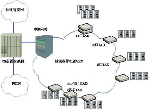 如圖4所示,該公司采用中興ZTE Softswitch系統(tǒng)部署了城域寬帶電話系統(tǒng),在城域網內通過VPN組網,各辦公地電話機通過多口IAD接入寬帶電話網絡,通過在ZTE