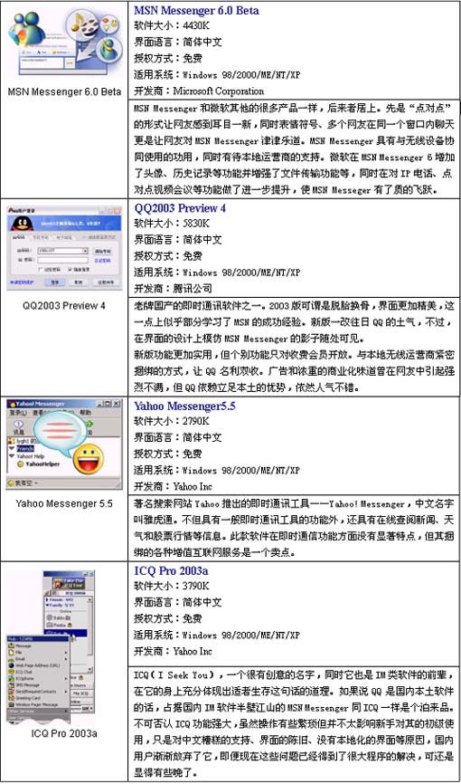 四款主流即時信息軟件2003年新版評測