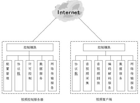視頻會議系統(tǒng)一般由視頻控制服務(wù)器、會議客戶端軟件以及IP傳輸網(wǎng)絡(luò)系統(tǒng)組成(如圖1所示)。
