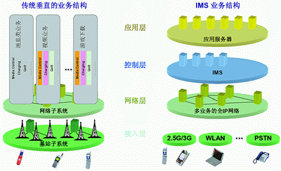 傳統(tǒng)的業(yè)務結構和IMS業(yè)務結構比較