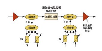 一些基于廣播和選擇結構的ROADM提供了很多波長,可以克服這種結構固有的缺乏波長重用的缺點。流量異常增加需要在某些點重用波長時,可以增加波長阻擋器(見圖2)。