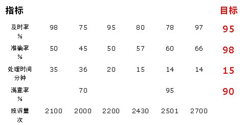 從準(zhǔn)確率的角度來看:各月指標(biāo)值都低于目標(biāo)值,處于沒有達(dá)標(biāo)狀態(tài),但從1-6月各月準(zhǔn)確率的變化情況來看,其處于一個(gè)持續(xù)改進(jìn)狀態(tài)(連續(xù)三點(diǎn)以上的上升可認(rèn)為是持續(xù)改進(jìn)),即說明通過管理控制,該指標(biāo)得到了持續(xù)改善。因此,對(duì)準(zhǔn)確率的管理是有效的,雖然目前還沒有達(dá)到目標(biāo)值。