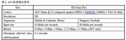 鑒于AVC的編碼效率能夠達(dá)到MPEG-2的2倍,我國(guó)有關(guān)測(cè)試機(jī)構(gòu)在測(cè)試AVS時(shí),通常把AVS視頻的碼率也設(shè)在MPEG-2典型碼率的二分之一或更低,也就是測(cè)試AVS編碼效率是MPEG-2的2倍或更高的情況下的AVS視頻的編碼質(zhì)量是否能夠廣播要求。