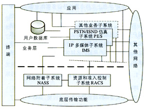 - PSTN/ISDN仿真子系統(tǒng)(PES):為經(jīng)過網(wǎng)關(guān)連接到IP網(wǎng)的傳統(tǒng)電話終端仿真PSTN/ISDN網(wǎng)絡(luò),保證傳統(tǒng)PSTN/ISDN業(yè)務(wù)的可用性和一致性,使得終端用戶不會(huì)意識(shí)到其實(shí)并沒有連接到PSTN/ISDN網(wǎng)絡(luò)。
