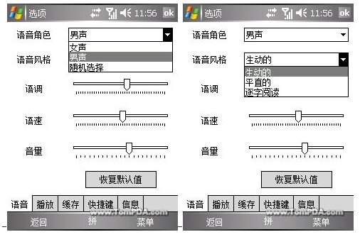 “移動(dòng)聽(tīng)網(wǎng)”這款軟件還可以通過(guò)用戶的喜好與風(fēng)格,自行設(shè)置語(yǔ)音角色,程序內(nèi)置了女生和男聲以供用戶選擇,當(dāng)然如果你是那種什么都無(wú)所謂、隨便的話還可以選擇隨機(jī)選擇,讓程序來(lái)決定語(yǔ)音角色。如果你是那種個(gè)性十足要與眾不同的人還可以通過(guò)“語(yǔ)音角色”、“語(yǔ)音風(fēng)格”、“語(yǔ)調(diào)”、“語(yǔ)速”、和“音量”等控制參數(shù)來(lái)調(diào)節(jié)語(yǔ)音效果,生成自己喜歡的音效。