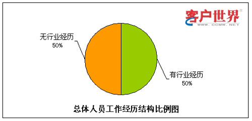 呼叫中心由于高壓力、24小時輪班等工作特性,有相當(dāng)比例的流失是因為不適應(yīng)工作環(huán)境而導(dǎo)致的,其中一個主要原因就是新入職員工想象中的工作環(huán)境和現(xiàn)實情況大相徑庭。而有呼叫中心工作經(jīng)驗的員工對于這點的適應(yīng)性相對較強(qiáng),因此我們對呼叫中心員工是否有行業(yè)經(jīng)歷方面的情況進(jìn)行了統(tǒng)計分析。