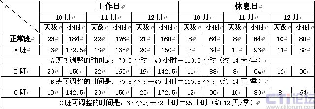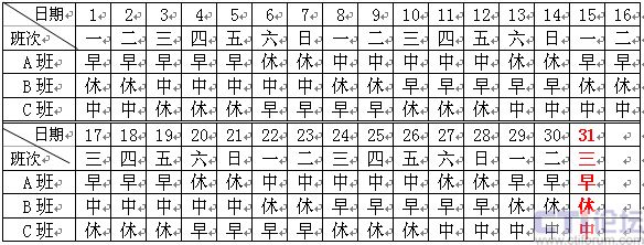 1)正常日班人員:主要的工作時(shí)間是8:00~16:00,該班組人員是固定在這一時(shí)間段內(nèi)工作,不另作安排。