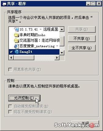 然后在客戶端Netmeeting中只須在其窗口出現(xiàn)的共享程序窗口中單擊“控制”/“請求控制權”并經(jīng)授權后即可以操控主機上的應用程序了。