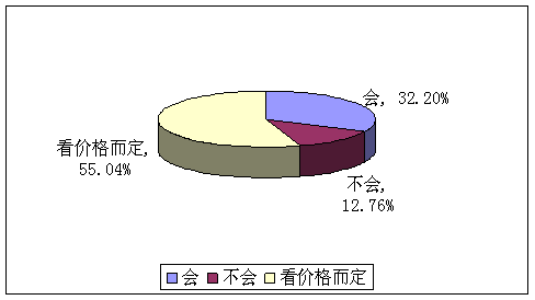 A、會(32.20%) B、不會(12.76%) C、看價格而定(55.04%)