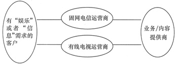 如圖1所示,雖然兩者使用的技術(shù)不同,但它們有一個(gè)相同的運(yùn)營組織結(jié)構(gòu),也就是說,客戶、運(yùn)營系統(tǒng)和業(yè)務(wù)/內(nèi)容提供商是它們競爭的3要素,下面將從這幾個(gè)方面對(duì)IPTV與“數(shù)字電視”的競爭做簡要的分析。