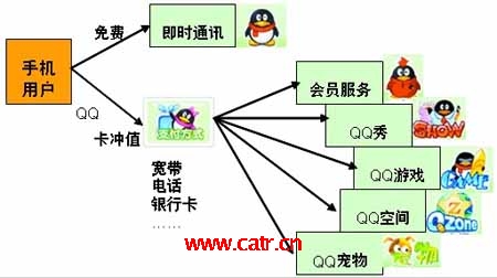 三、增值服務(wù)類商業(yè)模式。它承襲固定互聯(lián)網(wǎng)服務(wù)的商業(yè)模式,以終端用戶為付費對象,通過移動互聯(lián)網(wǎng)服務(wù)所衍生的增值服務(wù)進(jìn)行收費。以手機騰訊為例,手機QQ服務(wù)免費,但對虛擬物品銷售,包括QQ秀、寵物等進(jìn)行收費,并已成為主要收入來源,它是互聯(lián)網(wǎng)QQ業(yè)務(wù)盈利模式的順延和擴展。