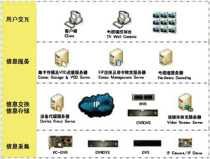 信息交換指將采集到的信息使用標(biāo)準(zhǔn)協(xié)議進(jìn)行封裝,通過IP網(wǎng)絡(luò)將封裝的信息交換到目標(biāo)主機(jī),目標(biāo)主機(jī)對(duì)信息進(jìn)行處理,以便提供各類信息服務(wù)功能,如集中存儲(chǔ)(NVR)、信息檢索、VOD