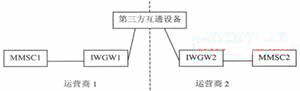 為實現(xiàn)不同運營商的用戶之間相互發(fā)送和接收多媒體消息,需要在不同運營商的多媒體消息中心之間實現(xiàn)互通。該互通需要多媒體消息中心(MMSC)與互通設(shè)備(IWGW)的連接、IWGW之間的連接實現(xiàn)。當(dāng)一個運營商的網(wǎng)絡(luò)用戶向另一個運營商的網(wǎng)絡(luò)用戶發(fā)送多媒體消息時,該多媒體消息經(jīng)發(fā)送方用戶歸屬的MMSC通過IWGW提交給接收方用戶歸屬的多媒體消息中心,由接收方用戶歸屬的MMSC向其網(wǎng)內(nèi)用戶發(fā)送。網(wǎng)間多媒體消息業(yè)務(wù)互通網(wǎng)絡(luò)結(jié)構(gòu)中主要包括多媒體消息中心(MMSC),互通設(shè)備(IWGW)以及相關(guān)的輔助設(shè)備等。IWGW是指不同運營商網(wǎng)絡(luò)之間的多媒體消息互通設(shè)備。網(wǎng)間多媒體消息互通設(shè)備間的互聯(lián)可以由兩個運營商的IWGW直接連接,也可以經(jīng)過第三方互通設(shè)備轉(zhuǎn)接(見圖1、圖2)。