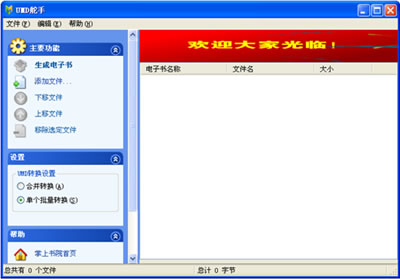 也有不少用戶利用UMD轉(zhuǎn)換工具將電子書(shū)轉(zhuǎn)換成UMD格式,但市場(chǎng)上的UMD轉(zhuǎn)換工具都不支持批量轉(zhuǎn)換功能,比如筆者最近想好好復(fù)習(xí)下英語(yǔ)。想將大量的英語(yǔ)資料制成手機(jī)電子書(shū),在上下班坐車(chē)的時(shí)候?qū)W習(xí),使用普通的轉(zhuǎn)換器就會(huì)耗費(fèi)許多時(shí)間。經(jīng)過(guò)筆者不懈的上網(wǎng)挖掘,終于發(fā)現(xiàn)了一個(gè)好東東。掌上書(shū)院推出了首款UMD手機(jī)電子書(shū)批量制作工具UMD舵手1.0beta,據(jù)介紹,UMD舵手是目前唯一款UMD手機(jī)電子書(shū)批量制作工具,最多可一次性同時(shí)轉(zhuǎn)換300本以上的圖書(shū),為喜愛(ài)自己動(dòng)手制作手機(jī)電子書(shū)的用戶提供了極大的方便,DIY個(gè)屬于自己的手機(jī)圖書(shū)館不再是夢(mèng)想了。