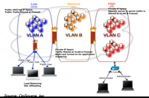 OpSource提供了不同種類的客戶化的方法,包括它自己的RESTful API,在某種程度上,企業(yè)可以在OpSource的公有云環(huán)境中實現(xiàn)"縱深防御"安全模式(如圖所示)。