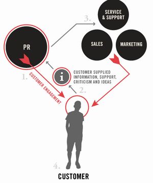 社會(huì)化CRM賦予了企業(yè)公關(guān)部門更重要的角色,通過(guò)公關(guān)部分與消費(fèi)者更多的互動(dòng),從中獲取消費(fèi)者的反饋信息、褒貶意見(jiàn)、新想法新創(chuàng)意。之后再通過(guò)銷售、市場(chǎng)推廣以及產(chǎn)品服務(wù)等措施來(lái)吸引更多目標(biāo)消費(fèi)群,并用公關(guān)活動(dòng)來(lái)進(jìn)一步推廣。