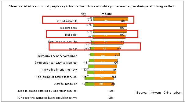 最后,同時(shí)也是最重要的,智能管道可以幫助運(yùn)營商提高用戶滿意度并鎖定高端用戶。愛立信消費(fèi)者研究室針對終端用戶做過詳實(shí)的統(tǒng)計(jì)調(diào)查,結(jié)果顯示,對用戶滿意度影響較大的前5項(xiàng)因素分別是網(wǎng)絡(luò)容量、網(wǎng)絡(luò)覆蓋、業(yè)務(wù)可靠性、業(yè)務(wù)易用性和價(jià)格,參見下圖。