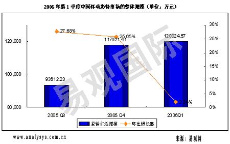 圖:2006年第一季度中國(guó)移動(dòng)彩鈴市場(chǎng)規(guī)模
