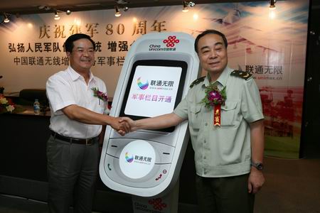 7月25日下午,中國聯(lián)通與解放軍總政治部宣傳部、解放軍報(bào)社等重要媒體共同宣布,將正式開通無線增值業(yè)務(wù)軍事欄目,將為聯(lián)通1.5億用戶提供軍事資訊服務(wù)。