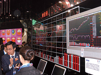 中國(guó)移動(dòng)展出的“財(cái)信通”業(yè)務(wù)受到參觀(guān)者的廣泛關(guān)注