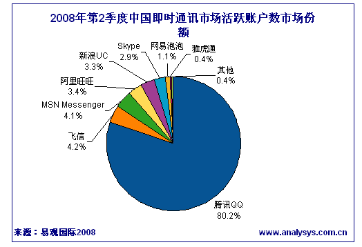 2008年第2季度中國即時通訊活躍帳戶數(shù)達4.26億