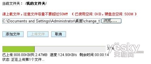 相對而言189在網(wǎng)絡(luò)硬盤功能方面則優(yōu)越很多,除了硬盤空間的容量外,支持上傳文件的進(jìn)度條顯示,而且上傳速率也不錯(cuò),基本穩(wěn)定保持在120KB/s。