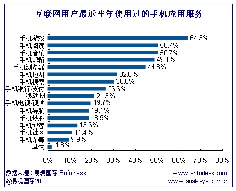 2009年手機(jī)游戲、手機(jī)閱讀成為用戶最受歡迎的手機(jī)應(yīng)用服務(wù)